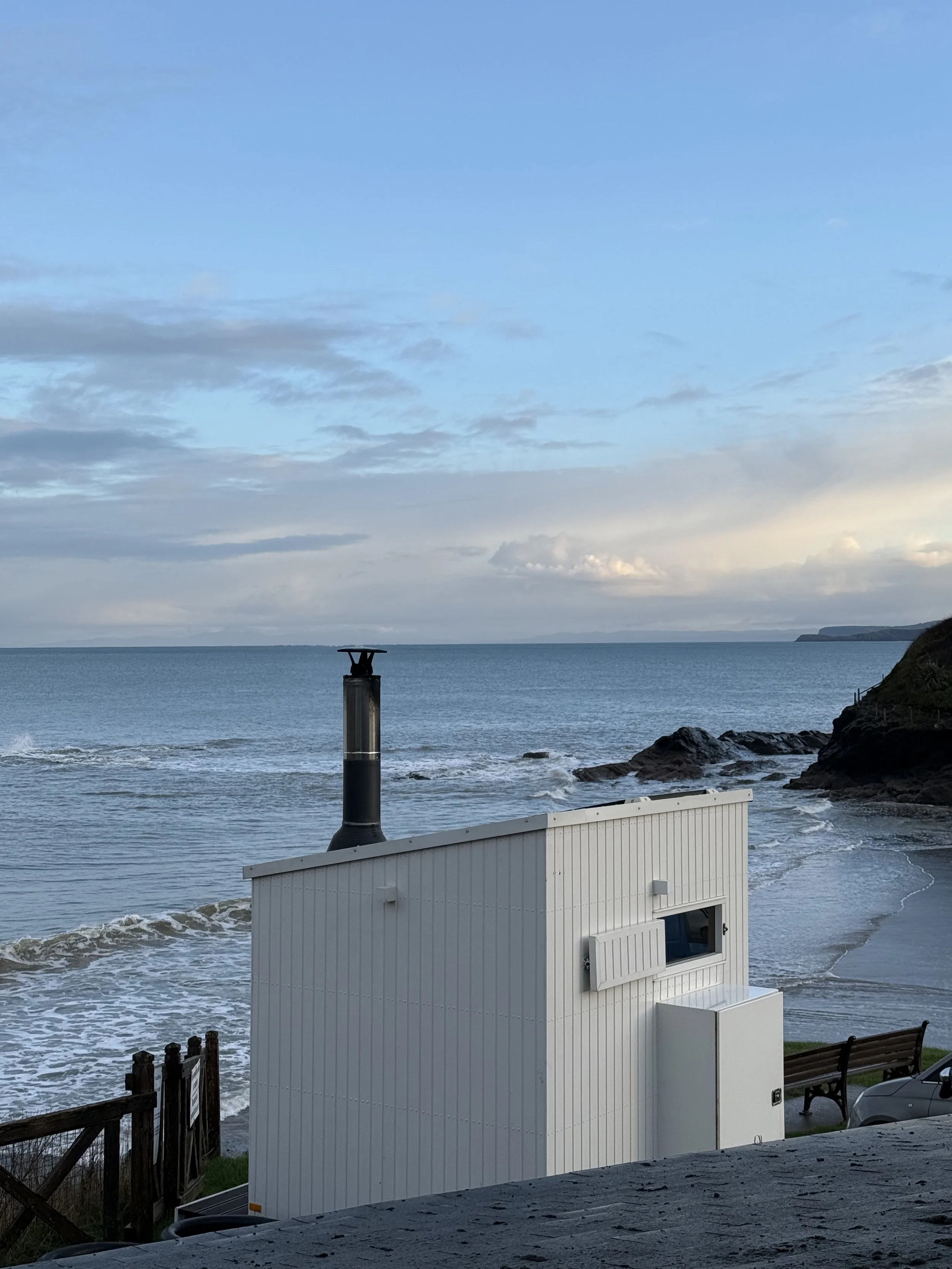 Our flagship sauna on Llangrannog beach. We offer 1hr private and communal sessions for up to 6 people ft. sunsets and dolphins. Book in advance to avoid disappointment